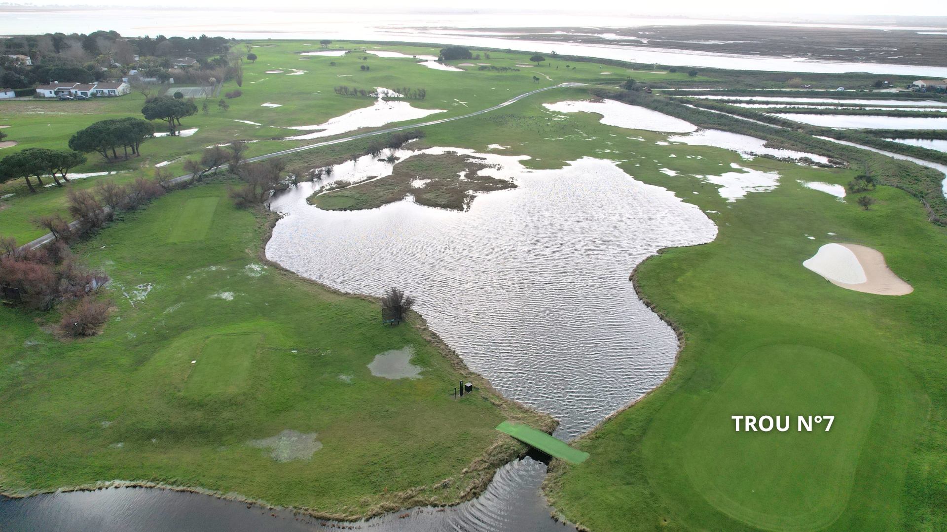 - Le trou n°7 est partiellement fermé : la première partie reste jouable jusqu’à la route, la seconde partie est fermée